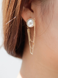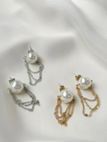 煌びやかなパール調とチェーンが組み合わされたピアス。