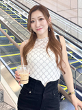 LSロゴをあしらったダイヤ柄プリントのトップス。