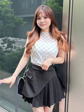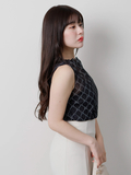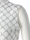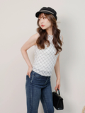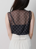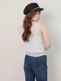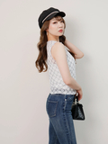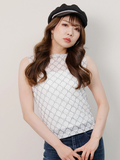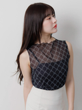 LSロゴをあしらったダイヤ柄プリントのトップス。