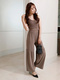 パンツ部分のギャザー切り替えが立体感のあるシルエットを演出◎