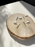 パールを連ねたバーモチーフが上品な印象を演出するスタッドピアス。