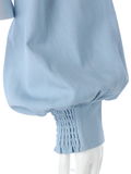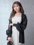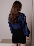 スリーブはふんわりとボリュームのあるシルエットになっており、フェミニンな印象を与えます。