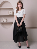 ・ロゴは胸元の高めの位置でバストが下がって見えない。