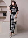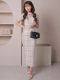【WEB限定】000442250930/チェックジャガードデコルテオープンワンピースのミディ丈バージョン