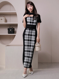 品名:チェックジャガードデコルテオープンミディワンピース(WEB限定)