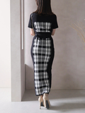 ・大きめなチェック柄がトレンド感のあるニットワンピース。
