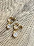 ジュエルのような輝きを放つストーンが揺れるフープピアス。