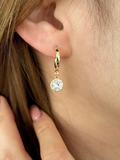 ジュエルのような輝きを放つストーンが揺れるフープピアス。