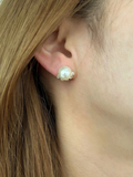 リュクスに輝くジュエルラインを添えたパールピアス。
