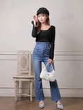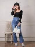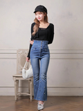 ・高めの位置からフレアを出していて脚が長く見えるようにしている。
