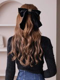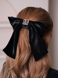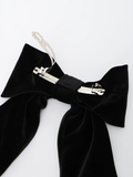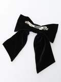ベロアリボンにLPプレートがワンポイントであしらわれたバレッタ。