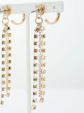 リュクスにキラめくラインストーンのロングチェーンが華やかなピアス。