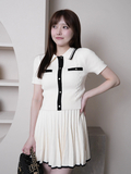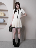 • バイカラーの配色が目を惹く、トレンドライクで高級感のあるニットセットアップ。