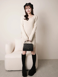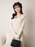 ・厚みのある編地で下着のラインを拾いにくい安心感ある着心地。