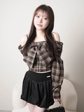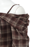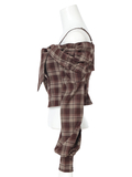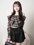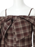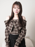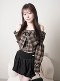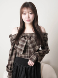 • デコルテを大胆に見せるオフショルデザインで計算された色っぽさを演出。