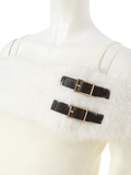・折り返し部分にはふわっとしたフェザーニットを使用し華やかな雰囲気をプラス。