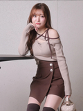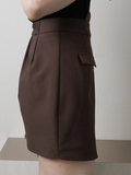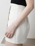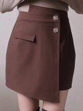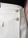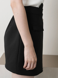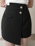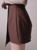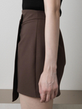 ・スカート見えするアシンメトリーデザインのショートパンツ。