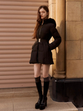 ・ミニ丈ボトム×ロングブーツでスタイルアップも華やかさも両立。