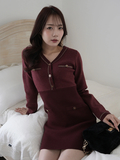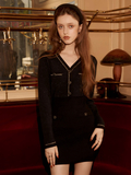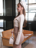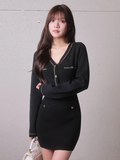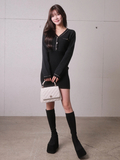 ・タイトシルエットのミニワンピースですっきりとしたボディラインを強調。
