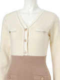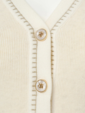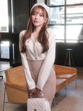 ・深めのVネックラインでデコルテを美しく見せ女性らしい抜け感を演出。