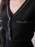 ・上身頃にはラメ糸をMIXしていて動くたびにきらめきがプラスされ華やかな印象に。