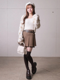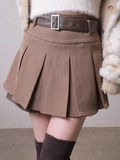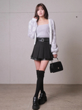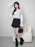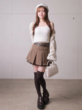 甘く見えるプリーツスカートもハードな印象に見せてくれる。