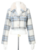 ・ブルーは淡いカラーでアイボリーのファーを合わせた絶妙な色合い。