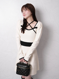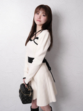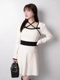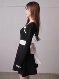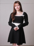 品名:バックリボンバイカラーフレアワンピース