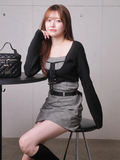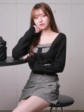 ・同じ生地を使った《コルセットチェックトップス》と合わせてセットアップ風に!