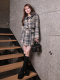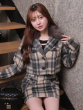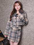 ・同じ生地を使用した《ファーカラーシャギーチェックジャケット》とのセットアップでコーデの主役に!