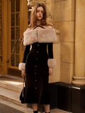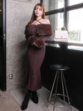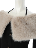 ・大きなファーカラーと袖口のファーをあしらった華やかなデザインで、冬のスタイリングを格上げする1着。