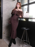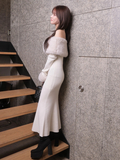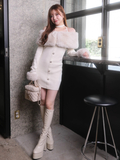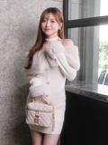 ・オフショル仕様でデコルテを美しく見せ女性らしさを引き立てるデザイン。