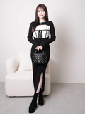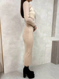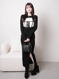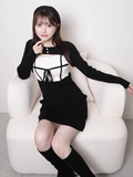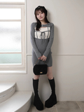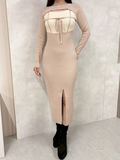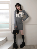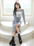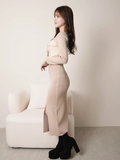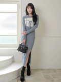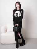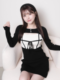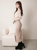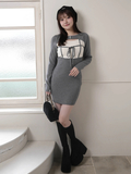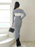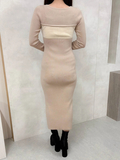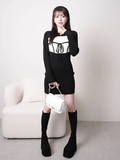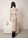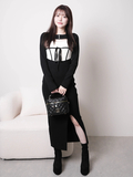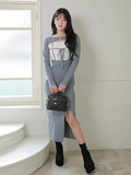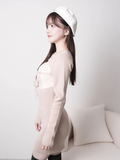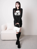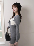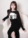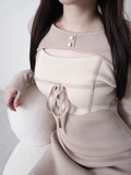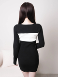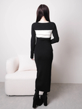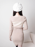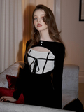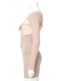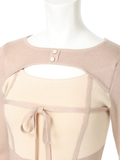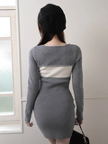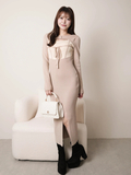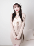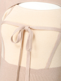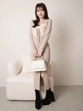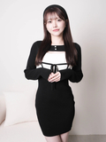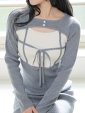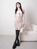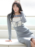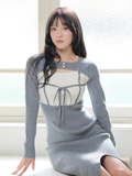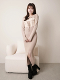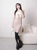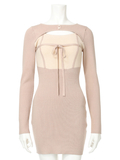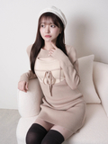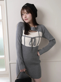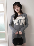 品名:デコルテオープンバイカラーリボンニットワンピース