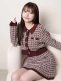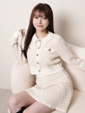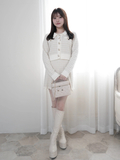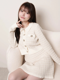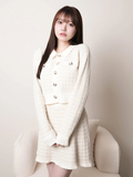 ・同じ糸と編地を使った《インナーショーパン付ツイードニットフレアスカート》とセットアップで着るのがおすすめ!
