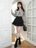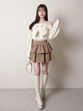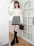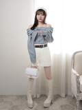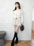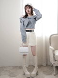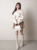 ・ミニボトムとブーツを合わせてガーリーな王道スタイルに。