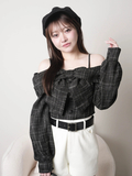 品名:リボンオフショルロングスリーブトップス