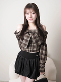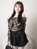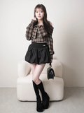 ・タイトなクロップドトップスと合わせるとウエストが強調されスタイルアップ。