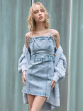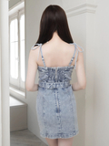 ・切り替えでバストの立体感をしっかり出しているので、デニム素材でも女性らしい美しいシルエットに。