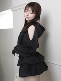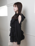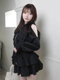 ・スカート部分はトレンドの2段フリルでガーリーで着映えするスタイリングに。