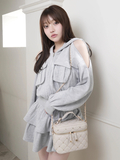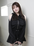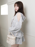 ・オープンショルダーで肌見せができカジュアルなスウェットアイテムでも女性らしい雰囲気。