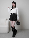 ・ゴールドボタンがクラシカルで上品なアクセントに。