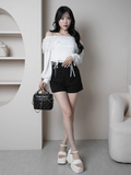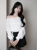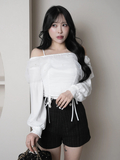 ・オフショルデザインで肩からデコルテがすっきり綺麗に見えるトップス。