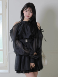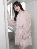 ・シフォンならではのエアリーな透け感で女性らしい雰囲気。
