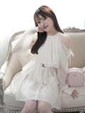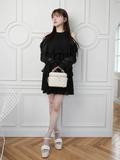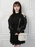 ・華奢な袖のリボンでガーリーに。リボンは取り外し可能。