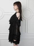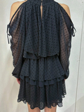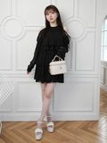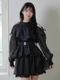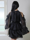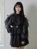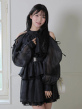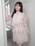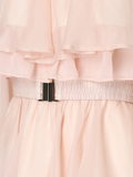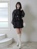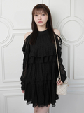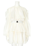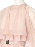 ・ほどよいツヤのある素材と柔らかいシフォンのティアードで軽やかな印象。