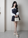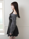 ・オフショルデザインでデコルテと肩のラインが綺麗に見え女性らしい雰囲気。