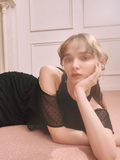 ・ブラックはシアー感のあるドットで甘すぎず品のある印象に。