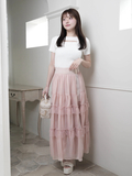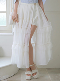 ・ティアードフリルデザインのロングシルエットで着るだけで華やかな雰囲気。