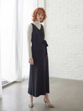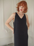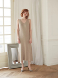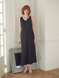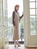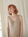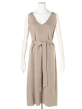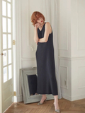 ロング丈のタンクワンピースとルーズニットカーディガンのアンサンブルは リラックス感と女性らしさのバランスが絶妙な、いちおしアイテム。