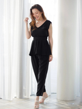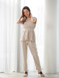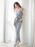 柔らかな風合いの綺麗め素材を使用し、カジュアルにもエレガントにもスタイリング出来ます。コルセットのようなベルト付きのウエストデザインもポイント◎
